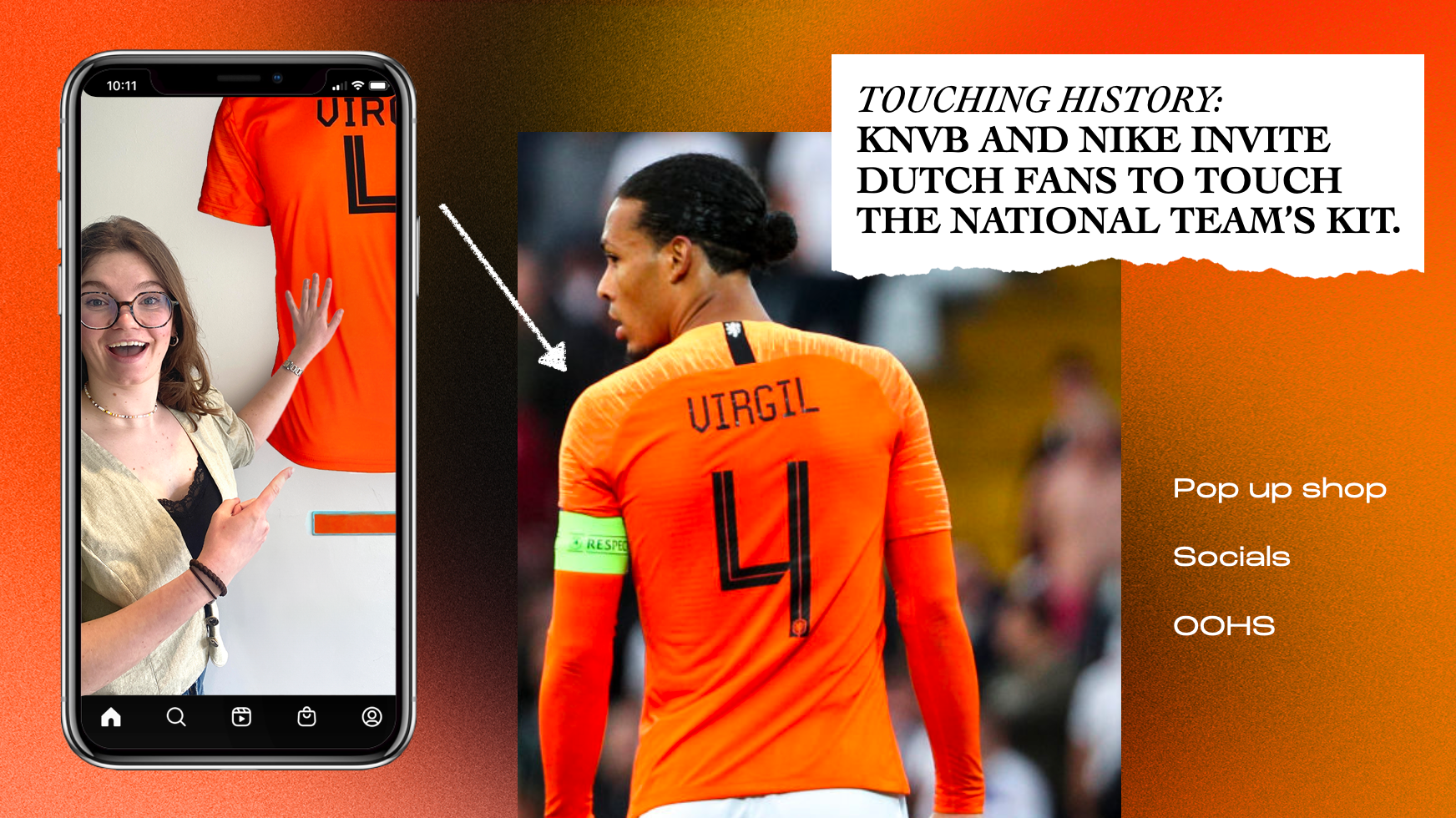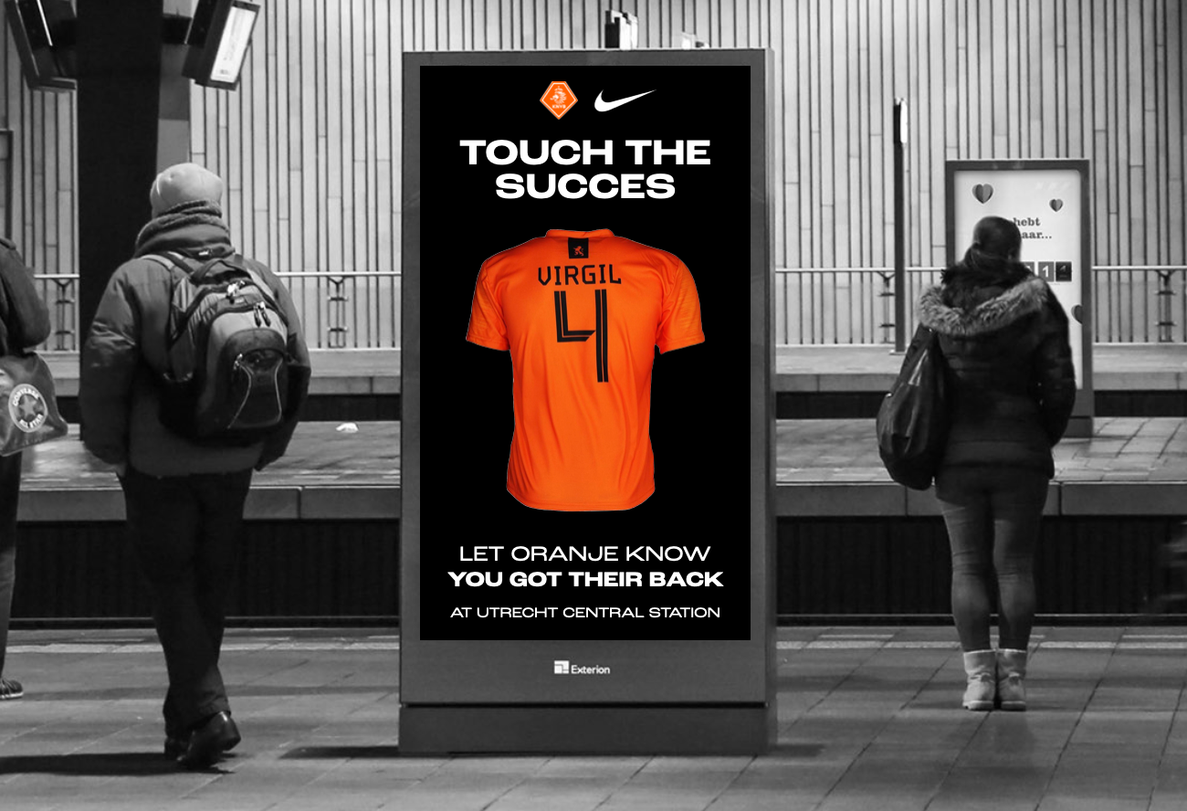 Creation: We involve Dutch fans in bringing the EuroCup title back to the Netherlands, by using the superstition factor. We let Dutch fans touch the new national team kit before they head to the European Championship, letting them be a part of history. Showing support for Oranje and letting them know that we have got their backs, literally.